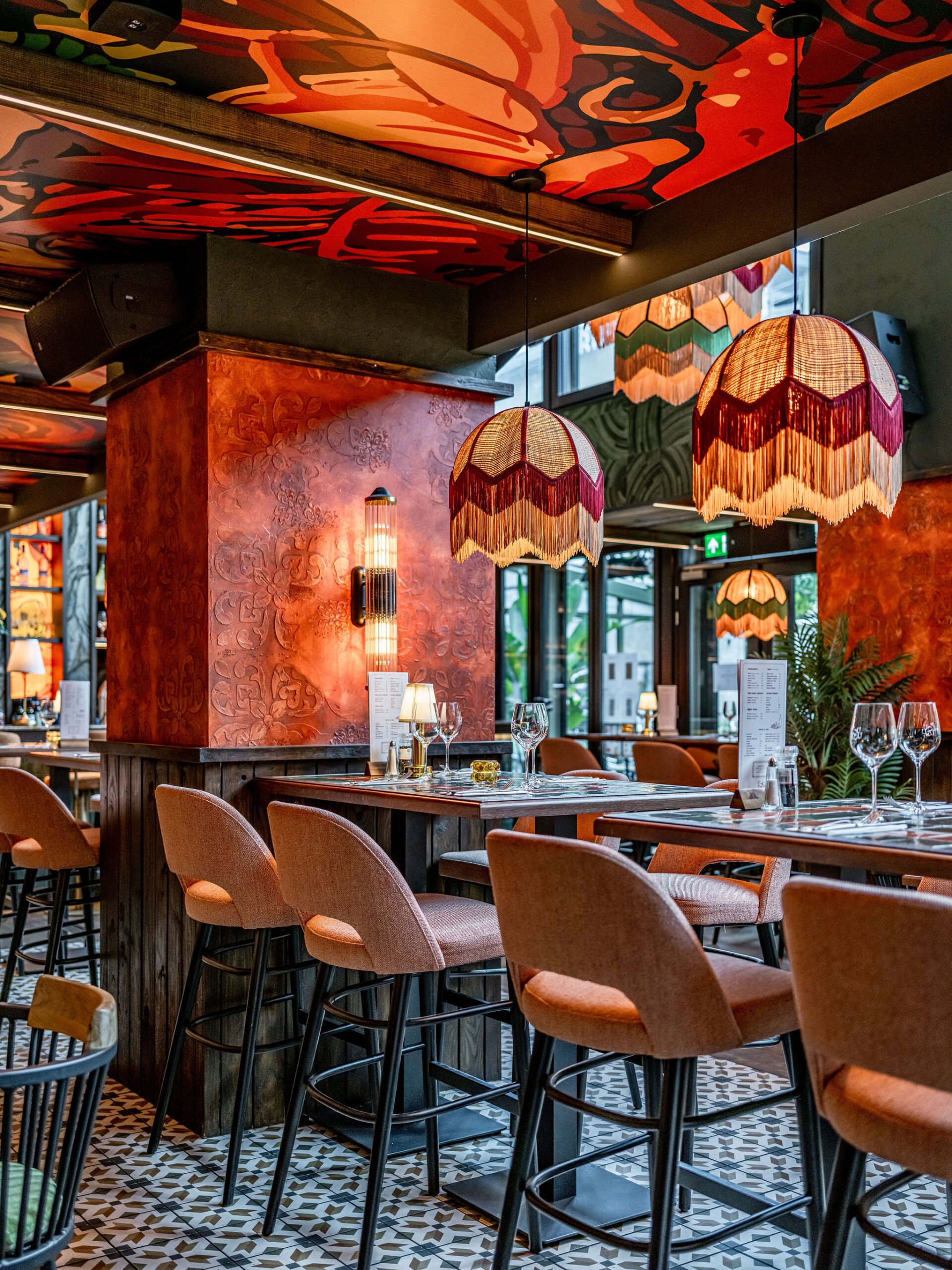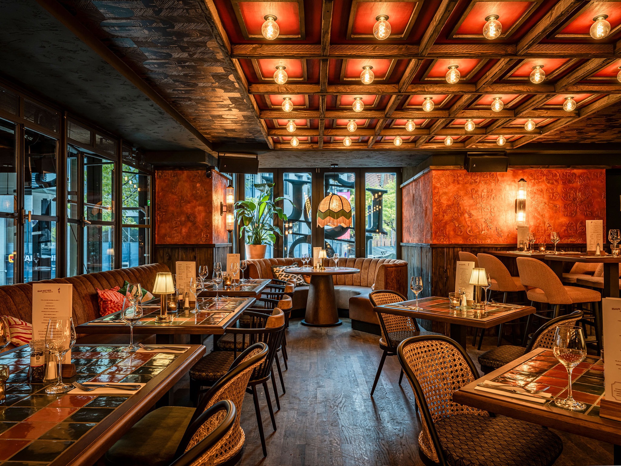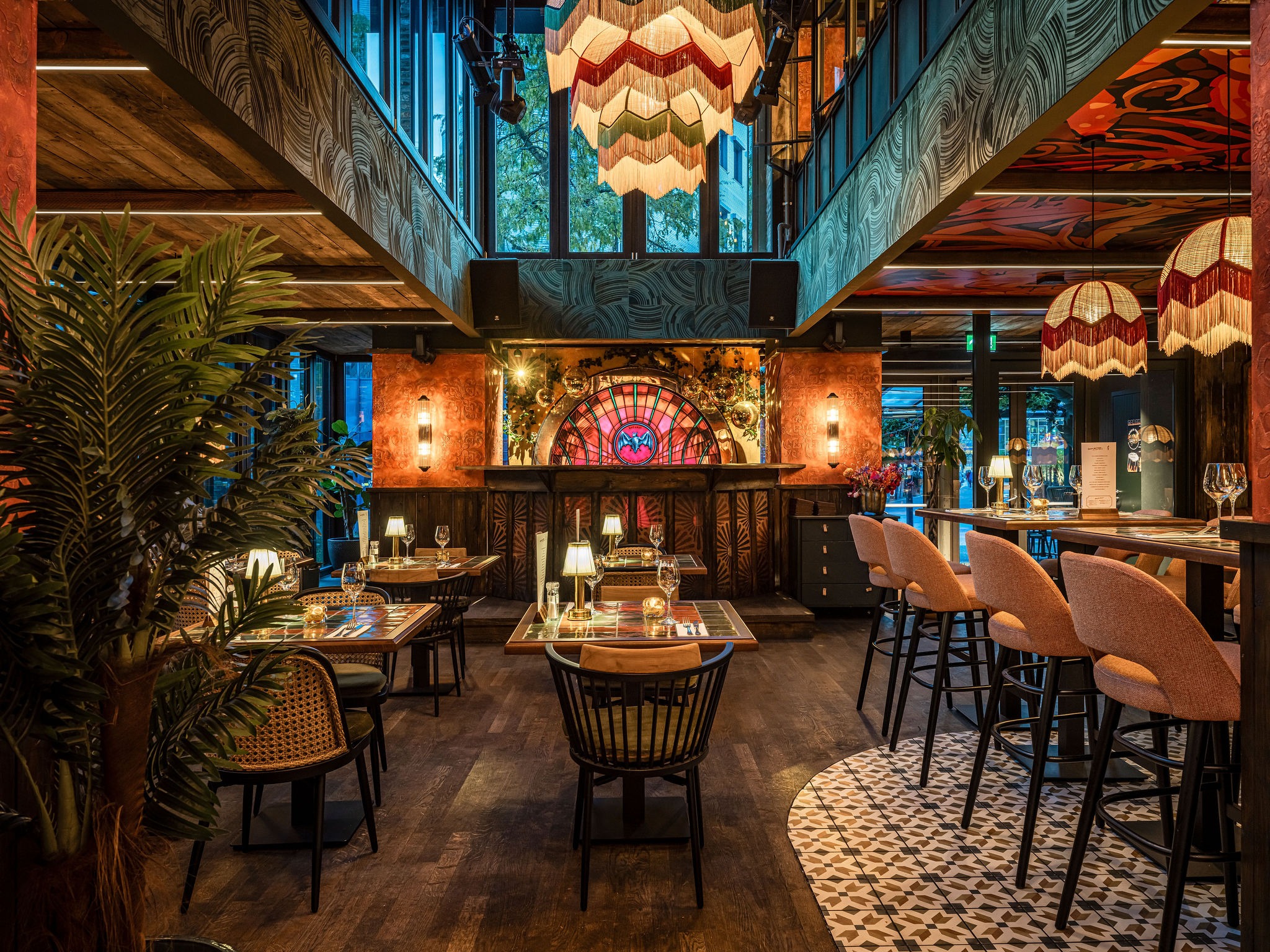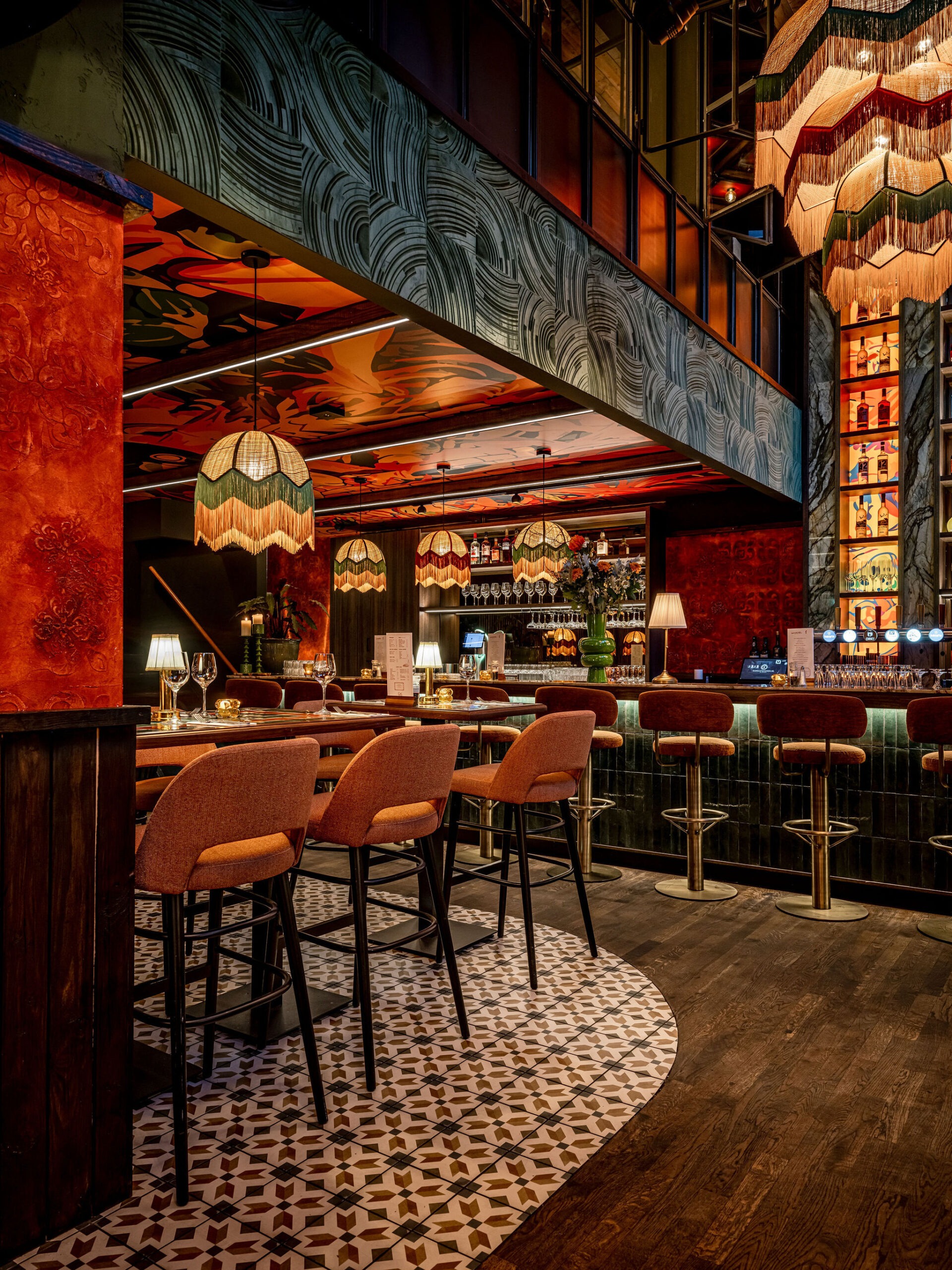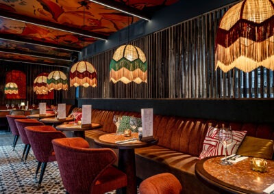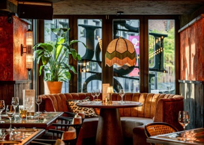 Bij Café LouLou hangt een cozy sfeer door de dieprode en warme kleuren. Het excentrieke interieur is ontworpen door studio Hans Kuijten en designbureau Roxxi en vormt een eclectisch en bombastisch geheel. Je ziet overal iets geks, maar alles past bij elkaar.