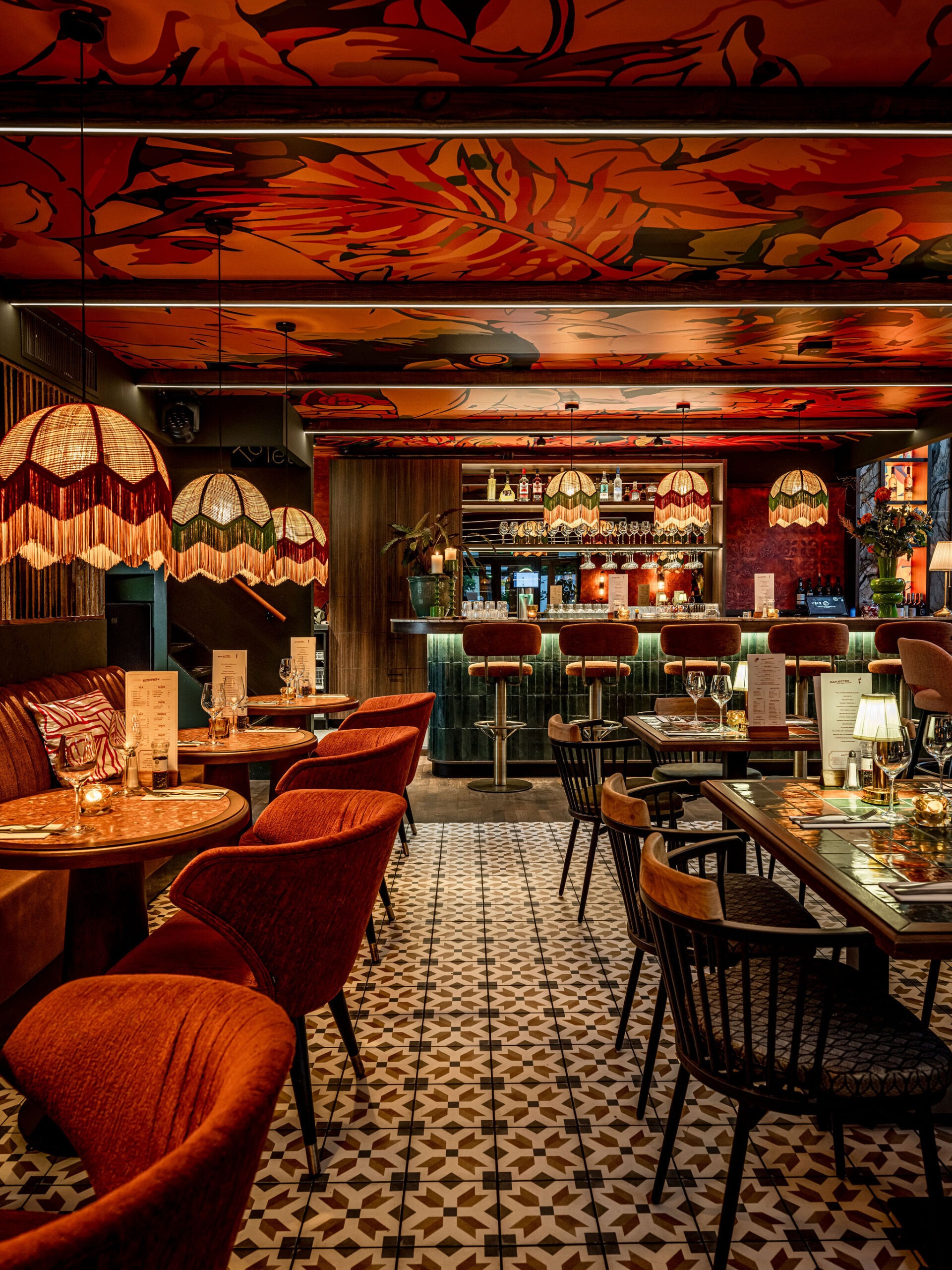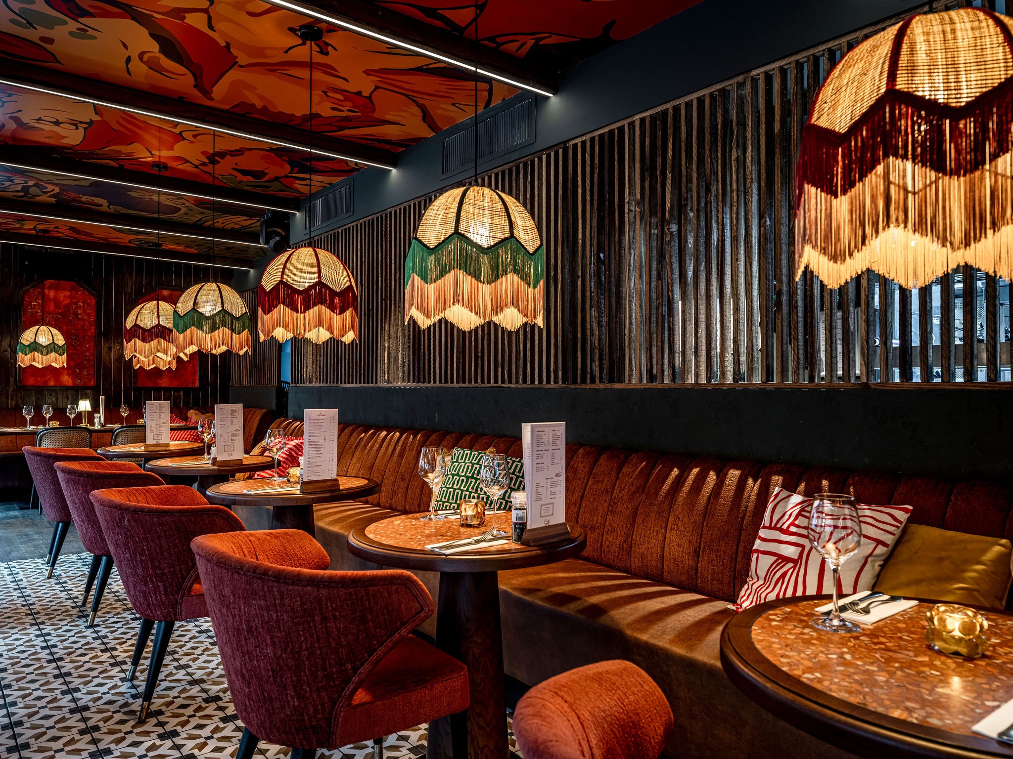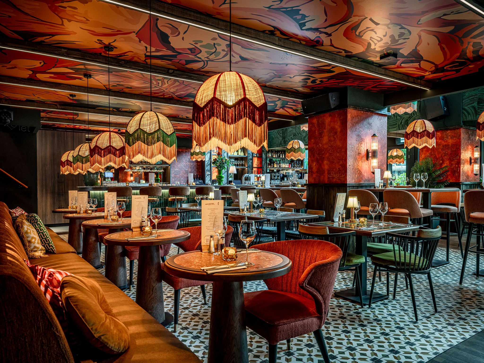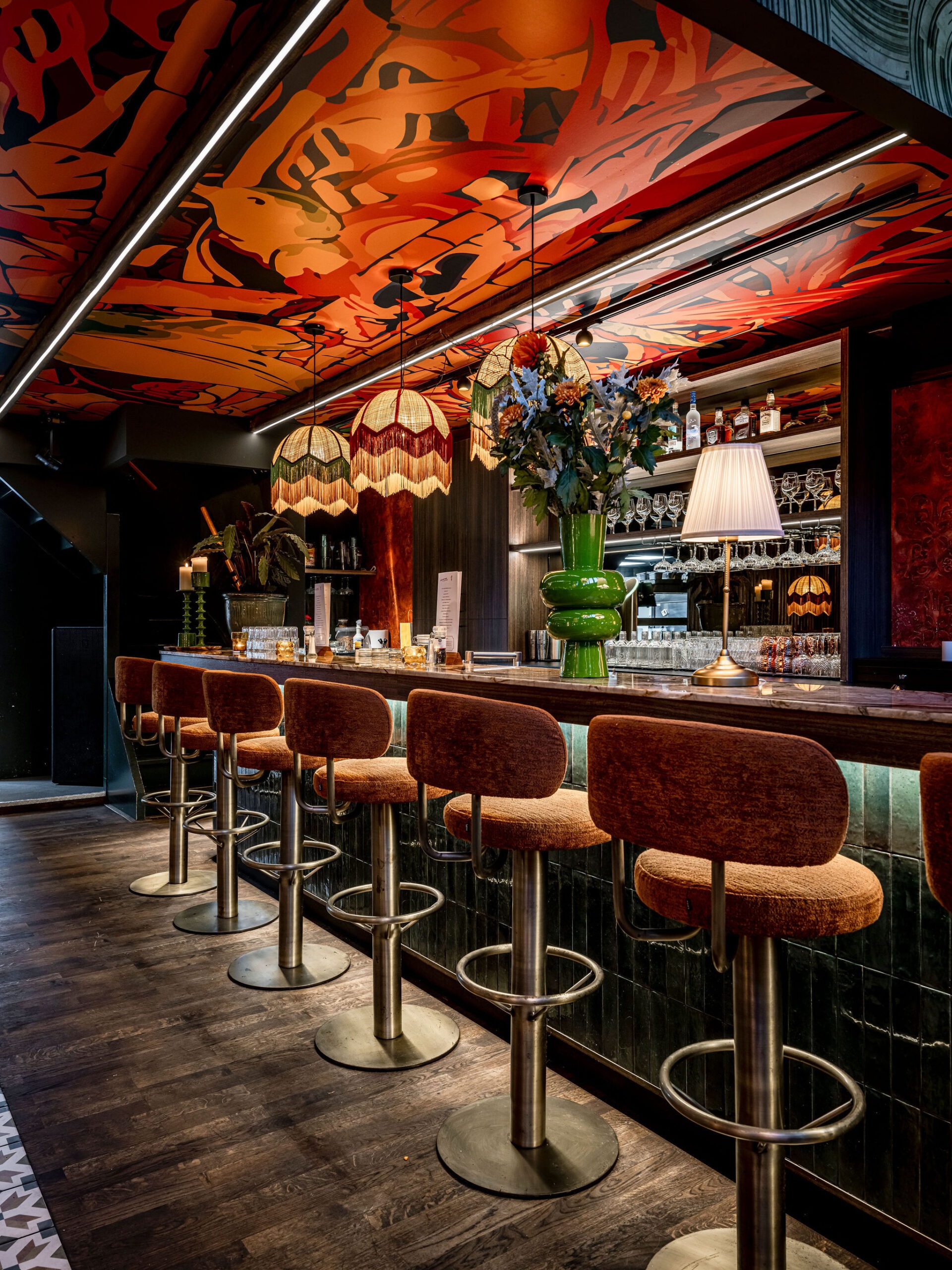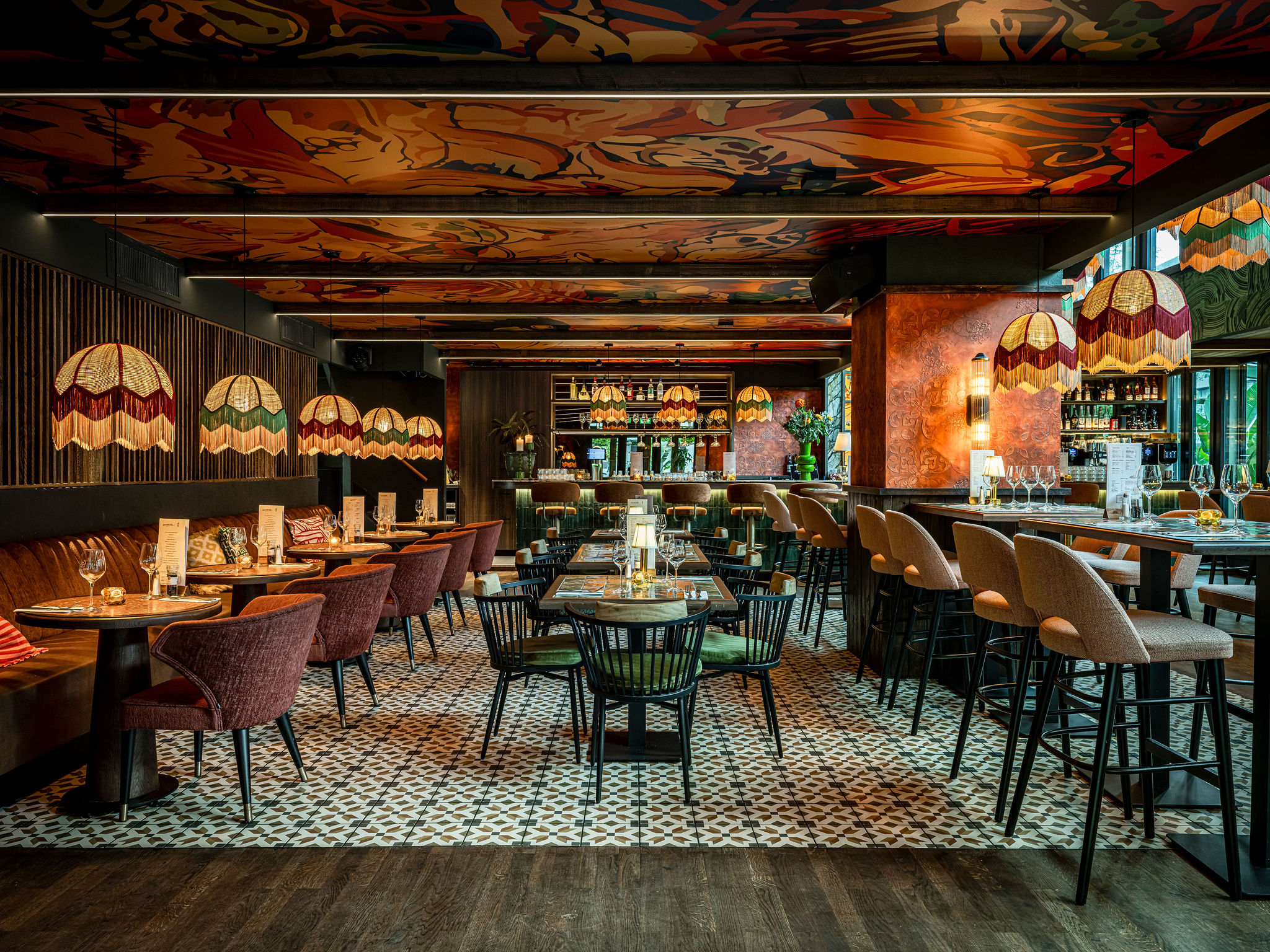 Bij Café LouLou hangt een cozy sfeer door de dieprode en warme kleuren. Het excentrieke interieur is ontworpen door studio Hans Kuijten en designbureau Roxxi en vormt een eclectisch en bombastisch geheel. Je ziet overal iets geks, maar alles past bij elkaar.
