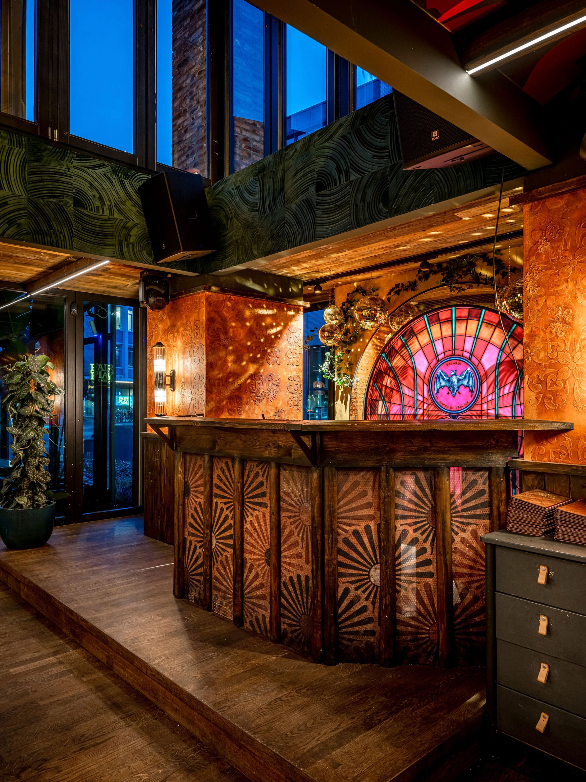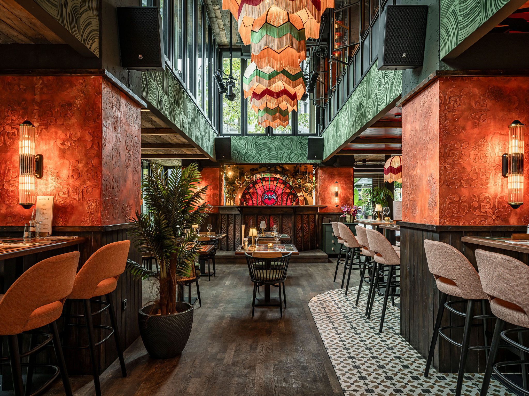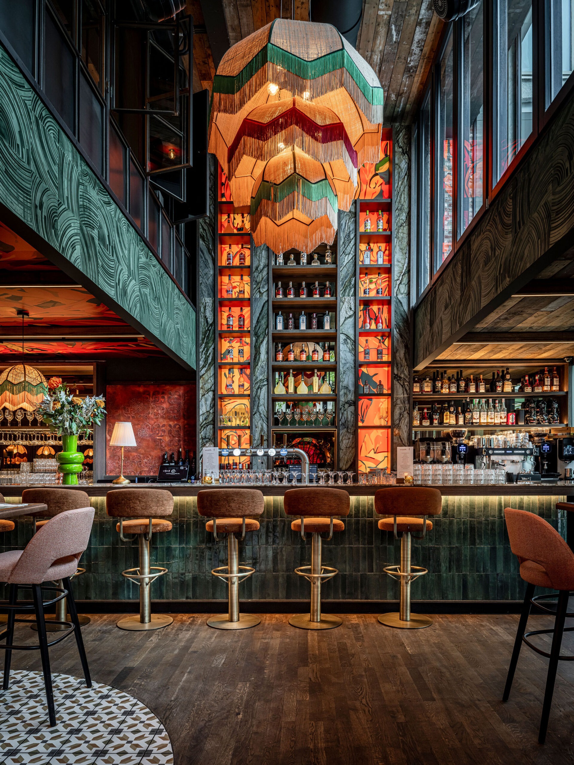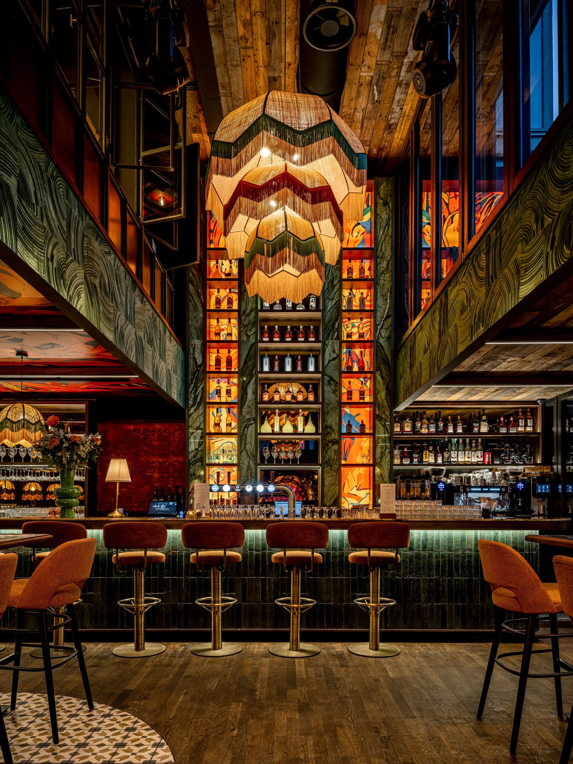 Bij Café LouLou hangt een cozy sfeer door de dieprode en warme kleuren. Het excentrieke interieur is ontworpen door studio Hans Kuijten en designbureau Roxxi en vormt een eclectisch en bombastisch geheel. Je ziet overal iets geks, maar alles past bij elkaar.